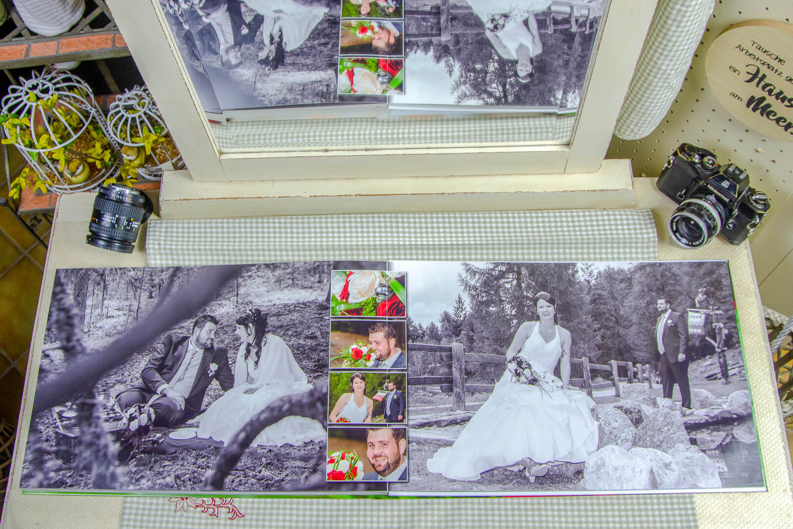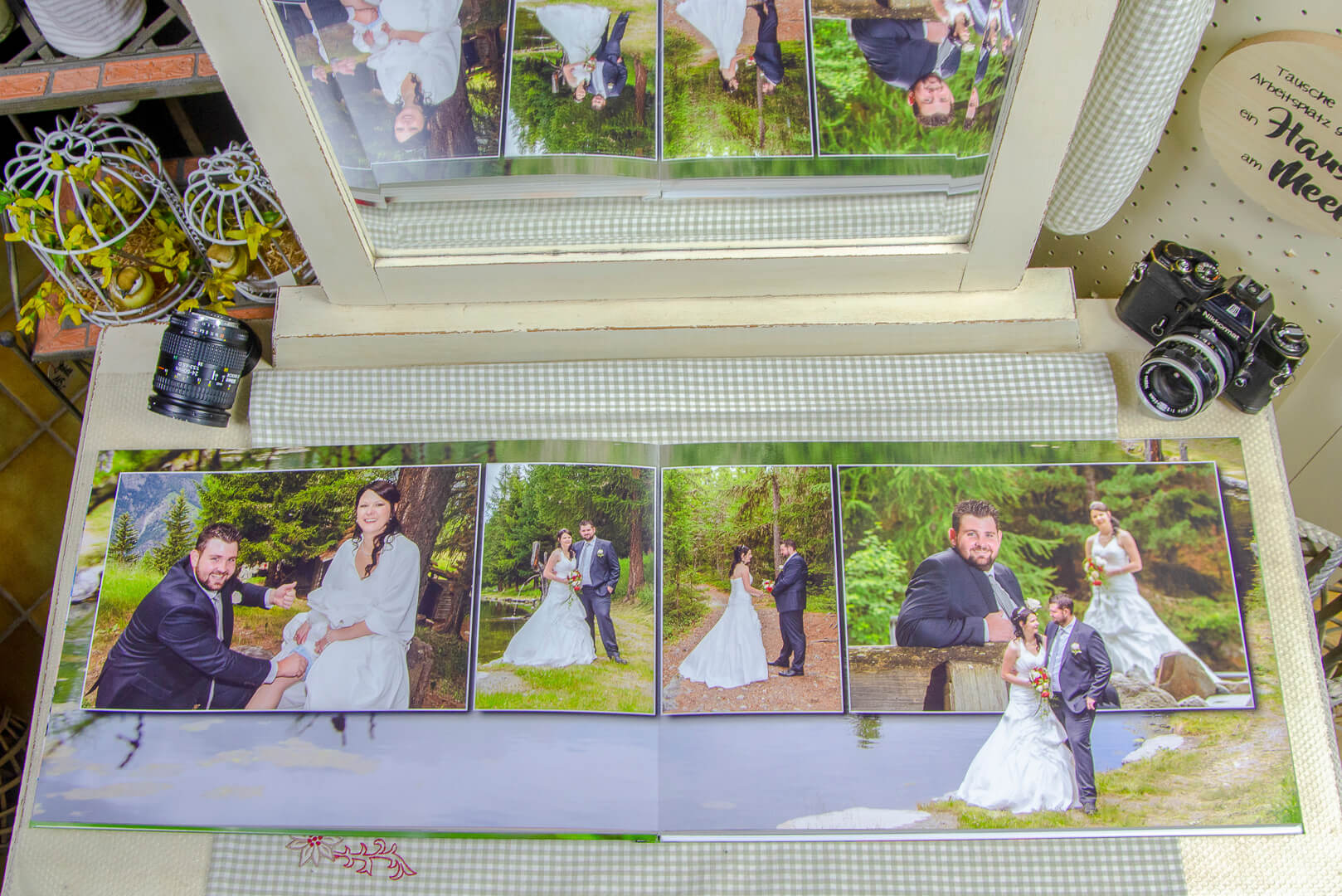 Auf einer Doppelseite hat man die Möglichkeit die Bilder auf einer Fläche von 29.8 x 90.4cm zu platzieren. Uneingeschränkte Möglichkeiten Ihr proffesionelles Album zu gestalten. Mit einem speziellen Verfahren haben wir die Möglichkeit, bis zu 150 Seiten für ein Buch zu erstellen.
